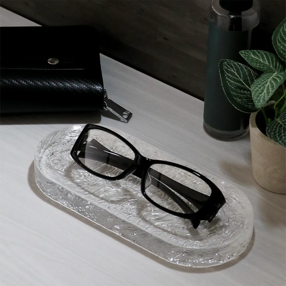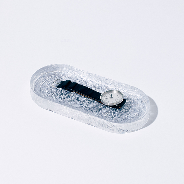 自動車のヘッドランプカバーなど透明成形のOEM製造を長年手掛けてきたことから、その技術を活用したものづくりの過程で生まれたマルチトレーのシリーズ。トレー中央にかけて緩やかなくぼみがあり、リングやアクセサリーなどの小物置きなどにおすすめです。